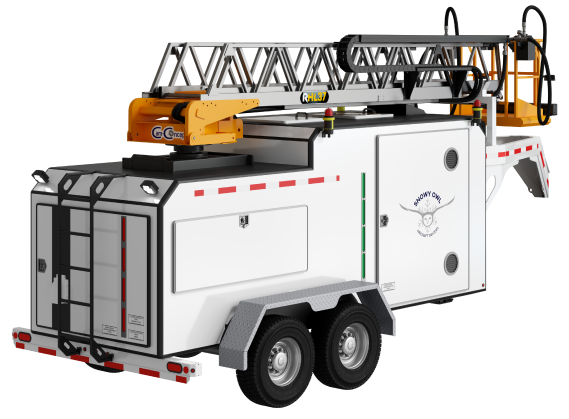 A Gooseneck deicing trailer, a world first. This trailer can be hauled by any pickup truck on any road.